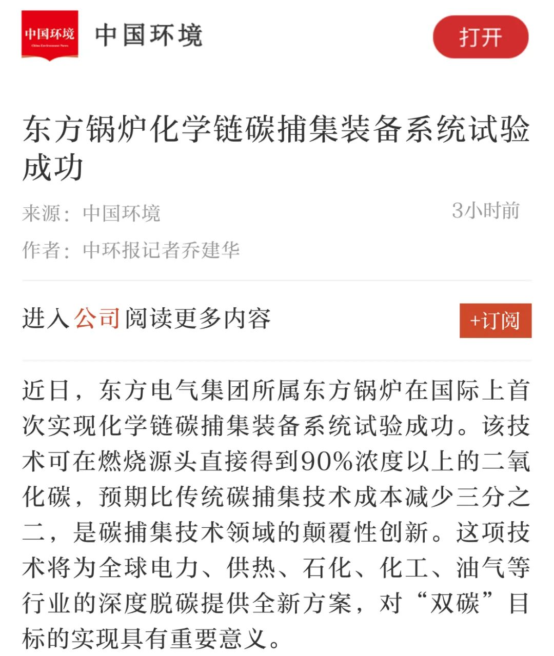 【中国电力报】世界最大化学链碳捕集装备系统试验成功