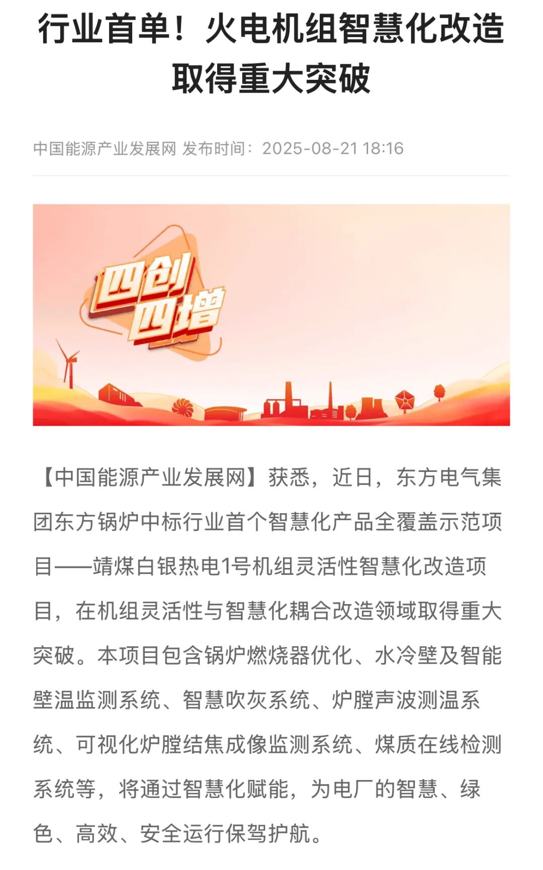 【中国能源产业发展网】行业首单!火电机组智慧化改造取得重大突破
