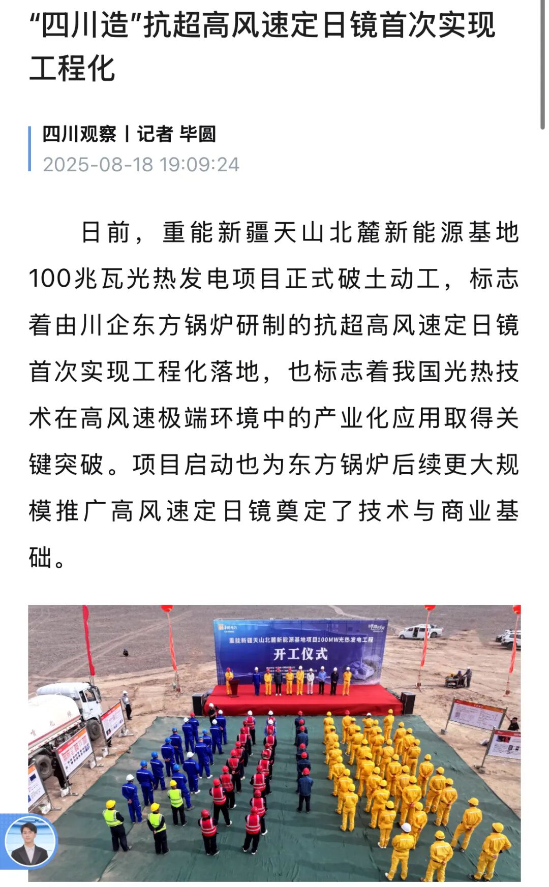 【四川观察】“四川造”抗超高风速定日镜首次实现
