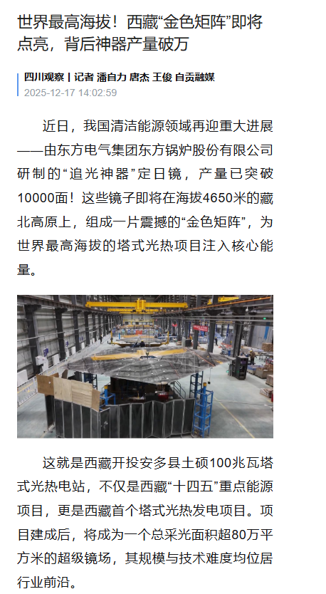 【四川观察】世界最高海拔!西藏"金色矩阵"即将点亮,背后神器产量破万