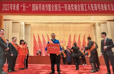 4月27日上午,庆祝“五一”国际劳动节暨全国五一劳动奖和全国工人先锋号表彰大会在北京人民大会堂隆重举行,JXF吉祥坊官网容器二分厂核电装焊作业组被命名为全国工人先锋号,作业长甘居东作为代表参加大会接受颁奖。